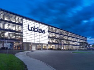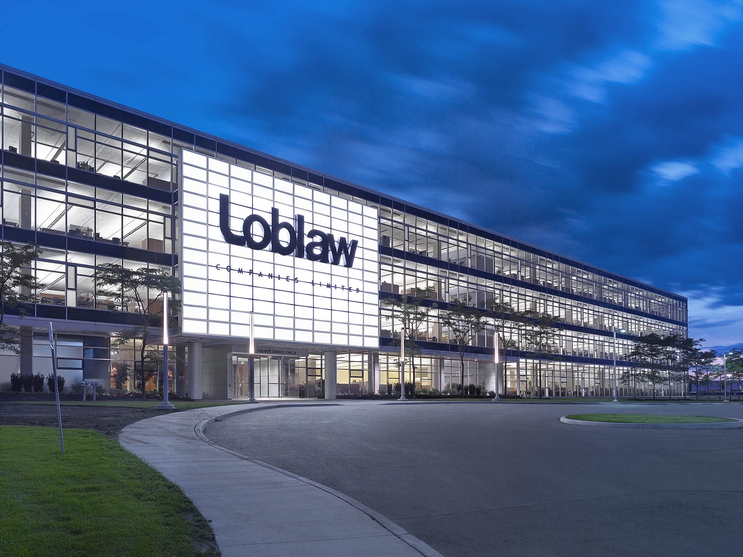 5b7ee62f4637681413cbc7ae_Loblaw Cos Ltd headquarter – Sweeny&Co Architects – P03_LR – exterior closeup entrance dusk